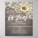 Oj Snapp Hashtag för sociala medier | Bröllopsdekor Poster Mallar - Vintage Spets, Solros och Strängljus på Rustik Träbakgrund.