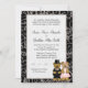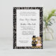 Söta bröllopsbjörnar iklädda smoking och brudklänning. Svart bakgrund med bröllopstext. Använd vår enkla mall för att anpassa med dina bröllopsdetaljer.