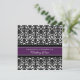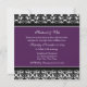 Elegant bröllop vow-förnyelseinbjudningar i lila av äggplantans mörk, dammmönster för svartvita blommigtar med full anpassade som innehåller information om din minnesceremoni.