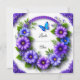 En detaljerad krans hantverkad med färgglada blommor, grön lövverk och en blå fjäril, mot en neutral bakgrund. Arrangemanget visar elegans och livfullhet som passar för olika dekorativa ändamål.