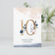 Bröllopsbord nummer i marinblått, rosenskimmer och inbjudningar