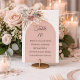Elfenbensvit bakgrund, taupefärgad båge, beige och taupefärgade rosor, pampasgräs. Anpassa och lägg till bordnummer och gästnamn