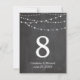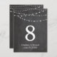 Bröllopsbord nummer strängljus och skrivtavla inbjudningar
