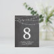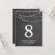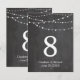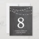 Bröllopsbord nummer strängljus och svart tavla inbjudningar