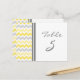 Eleganta och moderna ljusgula, grå och vita bröllopsbord nummerkort med retro och roliga sicksack-mönster. Anpassa dessa kort för att skapa anpassade bordskort för varje bord på ditt bröllop. Mönster finns i ett brett utbud av matchande bröllopsprodukter.