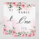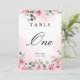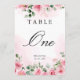 Bröllopsbordets nummerskylt i rosa blomster inbjudningar