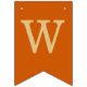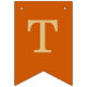 En enkel banner med flaggor för ett bränt orange bröllop, med namnen på bruden och brudgummen, med gulgyllene bokstäver på bränd orange bakgrund.
