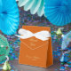 En enkel brännorange bröllopspresentlåda med modern färg och elegant guldfärgad kalligrafi.