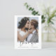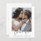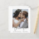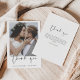 Bröllop budget tackkort med foto på framsidan och baksidan. Tackkorten har en modern handskriven kursiv typsnitts typografi som är elegant, enkel och modern att använda efter din bröllopsdag firande.