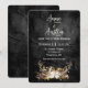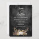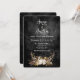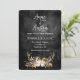 Ljus lykta i hjorthorns blomsterbukett på slitna svarta läder för en höstbröllopsinbjudan. All text är redigerbar.