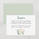 Klassisk bröllopskort för mottagning med text som kan anpassas för ditt evenemang i rik grön och mjuk svart färg. En elegant akvarellbukett med målade rosor, ranunkelblommor och blad i neutrala nyanser av vitt, rosafärgat, krämfärg, guld och grönt accentuerar framsidan. En mjuk grön färg med borstat prickmönster klär upp baksidan av kortet. Perfekt för vår- eller sommarevenemang.