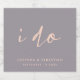 En snyggt bröllop-design med handskrivet manustypografi "I do" parad med modern typografititel och brid och groom-namn i rosa på mjuk grått-bakgrund. Perfektens utformning för din speciella dag!