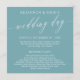 Ett elegant bröllop-dagsschema med elegant typsnitt och ett känsligt kalligrafiskript i tårblått och vitt. Lägg till ditt schema och namnen på din bröllopsfest! Ren, enkel, tidlös och elegant.