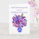 Ett nätt bröllopsdagkort för en fru, med en vas av rosor och blåa blommor, från en handpainted papper collage av Judy Adamson. Om du skulle något liknande bekläda, täcka text ändrande i any långt (eg. en olikt ålder, person eller språk), behar kontaktar mig till och med mitt lager, och jag ska är lycklig att göra det raksträckan bort.