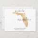 Planerar bröllop på en romantisk destination? Bjud in dina gäster med denna vackra inbjudan med denna gyllene Florida-karta och din anpassade destination markerad med det flyttbara hjärtat.