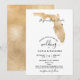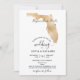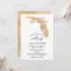 Planerar bröllop på en romantisk destination? Bjud in dina gäster med denna vackra inbjudan med denna guldfärgade Florida-karta och din anpassade destination markerad med det lösa hjärtat.