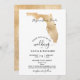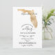 Planerar bröllop på en romantisk destination? Bjud in dina gäster med denna vackra inbjudan med denna gyllene Florida-karta och din anpassade destination markerad med det lösa hjärtat.
