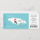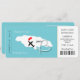 En rolig men stilren bröllopsinbjudan i form av en ombordstigningskort/biljett för par som gifter sig utomlands på Jamaica, som visas i en vit kart-silhuett på tealblå med söta röda kärlekshjärtan, flygplanssilhuett och vita pärlor som virvlar runt i en hjärtform. Baksidan av ombordstigningskortet är lätt att anpassa med dina uppgifter och personliga foto.