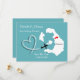 Ett roligt sätt att spara datumet för par som gifter sig i Santorini med en vit silhuettkarta på turkos med söta röda kärlekshjärtan och så lätt att anpassa med dina personliga namn och meddelande