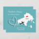 Ett roligt sätt att spara datumet för par som gifter sig i Skiathos med en vit siluettkarta på turkos med söta röda kärlekshjärtan och så enkel att anpassa med era personliga namn och meddelande
