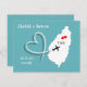 Ett roligt sätt att spara datumet för par som gifter sig på St Lucia, med en vit siluettkarta på turkos med söta röda kärlekshjärtan och så enkel att anpassa med era personliga namn och meddelande