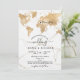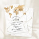 Planerar bröllop på en romantisk destination? Bjud in dina gäster med denna vackra inbjudan med guldvärldskarta och din anpassade destination markerad med det lösa hjärtat.