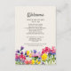 Bröllopsdetaljer inklusionskort med söta boho-, country-stil lila, gula, röda och rosa akvarell vilda blommor på en elfenbens-/kräm-/vit bakgrund. Detta kort ger gott om utrymme för att lägga till all information som dina gäster behöver för bröllopshelgen. Lägg ett av dessa i dina presentpåsar till dina gäster när de anländer till sitt hotell eller boende.