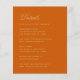 En mycket enkel budget bröllopsdetaljer bifogad kort, bara guldfärgad gul text på bränd orange bakgrund. Titeln Detaljer (som kan ändras) är skriven i ett elegant kalligrafiskt typsnitt.