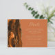 Den vänstra kanten på detta eleganta moderna bröllopskort har en bränd orange akvarell-agat-kant med falskt guldglitter. Titeln visas i handskriven stil, med anpassningsbar text nedan i tan kopparplate-skrift på en bränd orange bakgrund. Baksidan har en matchande bränd orange och guld-agat-design.