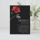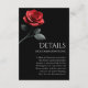 Förhöj din bröllopsfest med dessa bröllopsdetaljkort med en vacker röd ros. Dessa kort ger viktig information om mottagning och boende till dina gäster, vilket säkerställer en smidig och stilfull firande. Anpassa det med dina bröllopsdetaljer för att lägga till en unik touch, som sätter tonen för en elegant tillställning som kommer att minnas i flera år framöver.