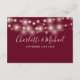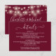 En elegant burgunderfärgad informationskort för bröllopsdetaljer med vackra strängljus. Anpassa med dina speciella detaljer i stilfull typografi och era namn och bröllopsdatum på baksidan. Designad av Thisisnotme