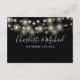 Ett elegant svart och vitt informationskort för bröllopsdetaljer med snygga strängljus. Personifiera med dina speciella detaljer i stilfull typografi och era namn och bröllopsdatum på baksidan. Designad av Thisisnotme©
