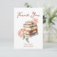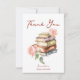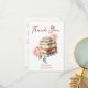 Tackkort för bröllopsdusch för ny berättelsebok, tackkort för bröllopsdusch med tema läsning av böcker, vattenfärg hög med böcker och rosor i rosenskär färg med avslappnad handskriven stil
