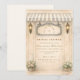 En mjuk, romantisk bröllopsduschdesign inspirerad av en elegant trädgårdsbutik, komplett med ömtåliga blommor, varma neutrala toner och vintage europeisk charm. De randiga markiserna och klassiska lyktdetaljerna frammanar en intim gårdscelebration, perfekt för en förfinad men välkomnande bröllopsfest.