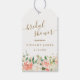 Bröllopsdusch i rosa guld med blomster och konfett presentetikett