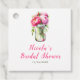 Vacker bröllopsdusch favorittetikett med rosa pionblommor i en masonkruka. Perfekt för en bröllopsdusch. Orden kan ändras för att passa dina egna detaljer eller krav