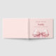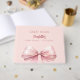 En bakgrundsfärg i rosabränd nyans. Dekorerad med en stor rosa rosett. Anpassa och lägg till ett namn, text.