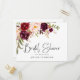 Bröllopsdusch i vattenfärg med blommor i burgunder inbjudan vykort
