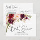 Vattenfärg burgunder rosa blommig bröllopsdusch inbjudan postkort. På andra sidan finns duschinformationen som kan anpassas.