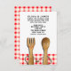 Brud och brudgum bröllopsdusch gaffel och sked seriefigur på rött gingham.
