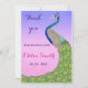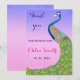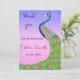 Bröllopsdusch med påfågelstema i rosa och blått tack kort