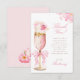 Bröllopsdusch med rosa blomblad Prosecco Tack Kort
