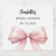En vit bakgrund. Dekorerad med en stor rosa slinga. Personifiera och lägg till brudens namn och ett datum. Svart handskriven stilsnutt.
