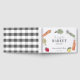 Den söta gästboken "Hon är inte längre på marknaden" för bröllopsduschen på bondens marknad har en vit bakgrund med grönsaker och frukter i akvarell. Baksidan har en vit bakgrund med svarta buffelmönster/rutiga mönster. Anpassa efter dina behov. Du hittar matchande produkter i min butik.