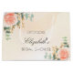 Gyllene vattenfärgspinselsträck som bakgrund. Dekorerad med en roséguld och rosafärgad vattenfärgad rosblomma, blommor, gröna eukalyptusblad, kvistar, grönska och falska guldkvistar. Personifiera och lägg till ett namn. Namnet skrivs med en modern handstilsbetonad skript.
