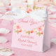 Med moderna rosa, persika och korallfärgade akvarellda dalia blommor. Flickaktigt pastellrosa som bakgrund. Mallar för brudens namn och ett datum. Korallfärgade bokstäver.
