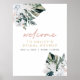 Denna välkomstskylt till bröllopsduschen har rosa pampas, tropiska palmkvistar och ett roligt handskrivet typsnitt. Denna affisch för bröllopsdusch är perfekt för din strand- eller tropiskt tematiserade bröllopsdusch.