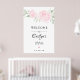 Bröllopsdusch välkomstskylt i rosa ros blomster poster