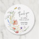 Stiliga vita bröllopsdusch rund favor tags har eleganta akvarell wildflowers, tack, ditt namn och dusch datum i chic bokstäver. Matchande föremål i vår kollektion.
