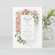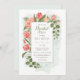 Denna blommiga inbjudan accentueras av vackra handritade blommor och löv. Akvarellbakgrund.